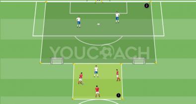 Doppelrechteck Spielaufbau 3 + Torwart gegen 2 und 1 gegen 1 Situation
