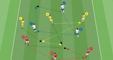 Passen und Annehmen in Dreiergruppen, visuell kognitives TrainingTaktik