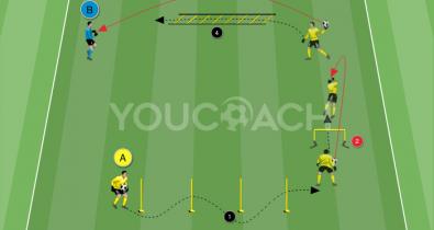 Vorschlag von Marcelo Bielsa für eine analytische Übung, um den Angreifer zu trainieren, sich einen Vorteil zu verschaffen, indem er sich Raum verschafft für den AbschlussSeiten