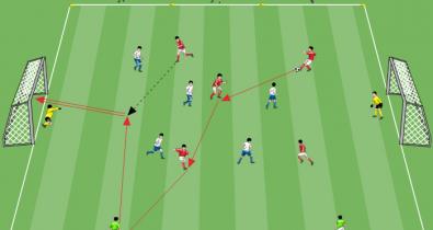 Offensive Spielform mit drei Mannschaften: 5 gegen 5 und 5 Aussenspieler
