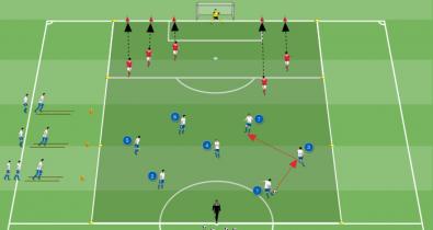 Situationsübung 2 gegen 2: Mit Verteidigern und Eroberung und Angriff in die Tiefe durch AngreiferFussball Konditionstraining