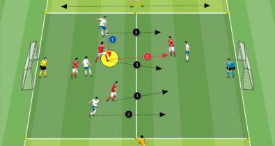 Vereinfachtes Spiel zum Trainieren des offensivem Umschalen mit schnellen NeustartsTaktik