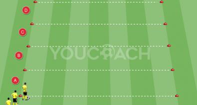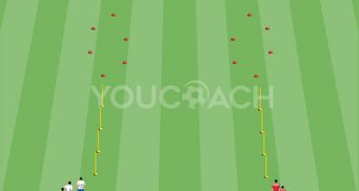Slalom in Ballführung und einem Präzisionsabschluss bei maximaler Geschwindigkeit und GewandtheitFussball Konditionstraining