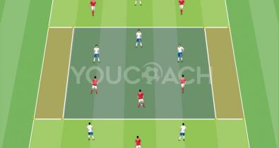 Die Penetration in der zentralen Zone verbessern und das Erkennen freier Räume mit Entwicklungen an den Flanken trainieren.Technik