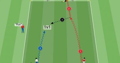 Übung für Manöverentwicklungen mit Ausgangspunkt unten und anschließender 1-gegen-1-Situation im AbschlussbereichTaktik