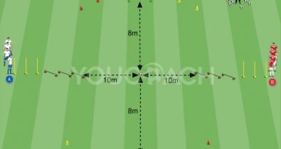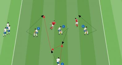 Offensive Übung 4 gegen 2 Überzahlsituation um die Tiefe zu attackierenSeiten