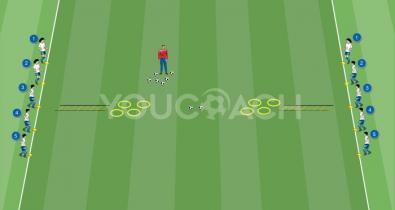Koordinations Parcours mit kognitiven Reizen zur Verbesserung der Schnelligkeit mit einem 1 gegen DuellTechnik