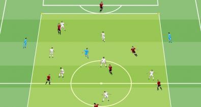 Situation, um die Spieler zu trainieren, eine Überzahl im Zentrum des Spielfeldes zu schaffenFussball Konditionstraining