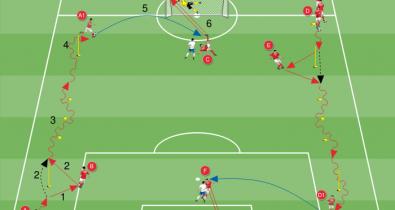 Funktionelle Technikübung, um den Spielern beizubringen, je nach taktischer Situation die richtigen Spielzüge zu wählen.Taktik