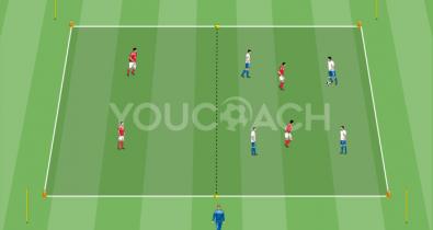 Ballbesitz mit hoher Intensität in Überzahl 4 gegen 2, um die aerobe Kraft, Ausdauer und Übergänge zu trainierenTechnik