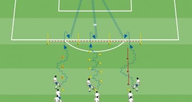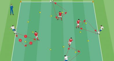 Übung zur Perfektionierung von Aspekten der Grundtechnik wie Passspiel und orientierte Ballannahme und -mitnahmeTechnik