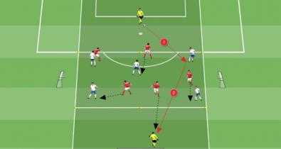 Übung zur Verbesserung des Ballbesitzes und des schnellen Wiedererlangens des Balls gemäß einem vordefinierten Spielmodell.Technik