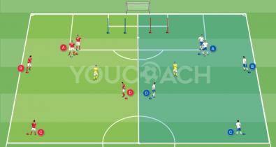 Spiel auf kleinen Raum 5 gegen 5 mit Vorgabe zum TorabschlussTorhüter training
