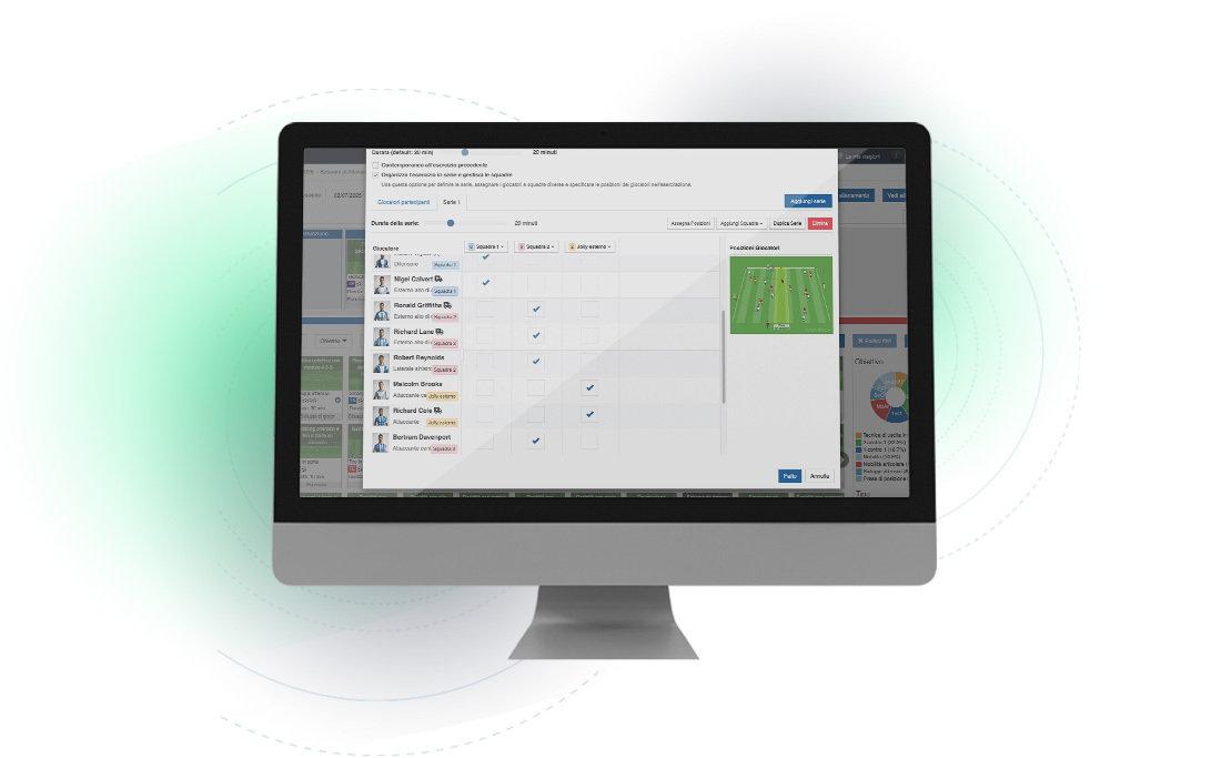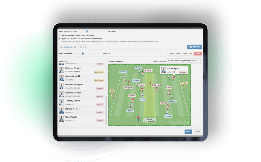 Die YouCoach App ist nicht nur eine Anwendung zum Sammeln von Daten, sondern ein echtes Werkzeug, um die Teamdynamik zu interpretieren und die Leistung auf dem Spielfeld zu verbessern, dank einer integrierten Sichtweise zwischen Zonenanalyse, Beziehungen zwischen den Spielern und der im Training verwendeten Methodik.
