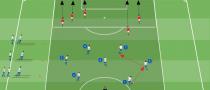 - Die beiden Spieler innerhalb des Ballbesitzquadrats spielen maximal zwei oder drei Ballberührungen.
