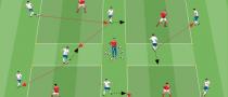 - Die beiden Spieler im Kleinfeld müssen bereit sein, schnell auf die sich ergebende Spielsituation zu reagieren: sich an die Rolle des Angreifers anpassen, um den Ball zu empfangen und abzuschließen, oder sich als Verteidiger in Position bringen, um den Gegner zu markieren, um eine einfache Annahme zu verhindern