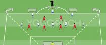 Vereinfachtes Spiel zum Trainieren des Ballbesitzes und der Balleroberung, wobei der Übergang trainiert wird. |