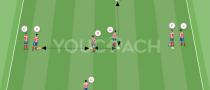 | Ballbesitzübung von Mikel Arteta, Überzahlsituation bei Ballbesitz nutzen | Passen, Annahme, Freilaufen, Abfangen, Zweikampf, Mobilität, Konsolidierung, Eins-zwei, Offensive Überzahl, Pressing, Umschaltverhalten |