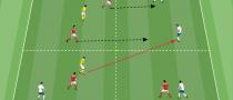 - Die Spieler im Ballbesitz können die Zone wechseln, indem sie den Ball führen oder einen Pass spielen und anschließend der Aktion folgen, indem sie ihre Position nach vorne verlagern.