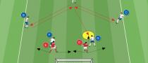 Rondo 3 gegen 1, dazu eine 1-gegen-1-Situation auf dem Flügel für die Flanke in den Strafraum und den Torschuss. |
