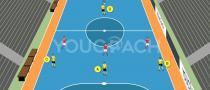 Vorschlag für ein 7-gegen-3-Rondo mit 6 Spielern + 1 Innenspieler, um die Beweglichkeit beim Ballbesitz zu trainieren. |