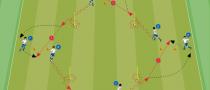 - Die Spieler innerhalb des Rechtecks müssen den Druck der gegnerischen Spieler ausnutzen, um sich zu befreien und Zeit und Raum zum Spielen zu finden und die Aussenspieler miteinbeziehen.
