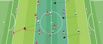 Vorschlag von Marcelo Bielsa für eine analytische Übung, um den Angreifer zu trainieren, sich einen Vorteil zu verschaffen, indem er sich Raum verschafft für den Abschluss |