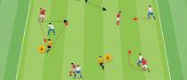- Der erste Spieler zwischen B und C, der die Strecke beendet, wird zum Angreifer und erhält den Ball von A, während der andere Spieler zum Verteidiger wird.