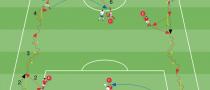 Übung zur Entwicklung von zwei 2-gegen-1-Situationen und anschließendem Torabschluss |