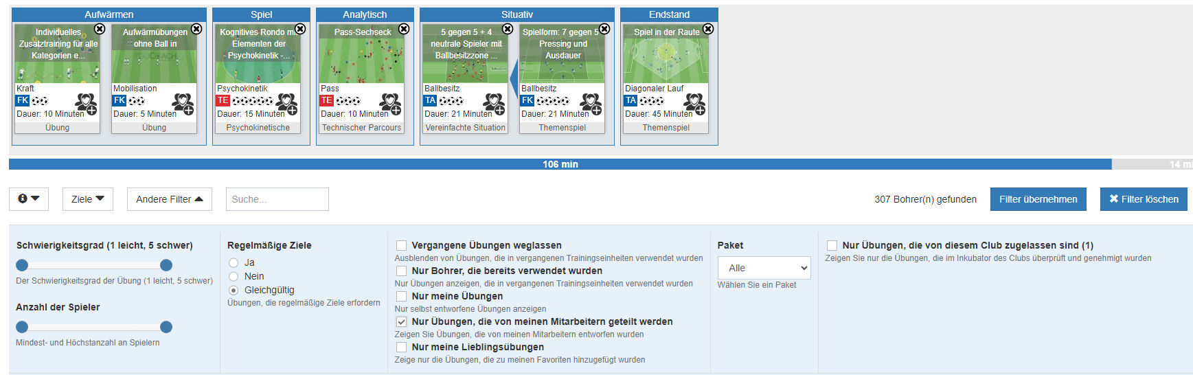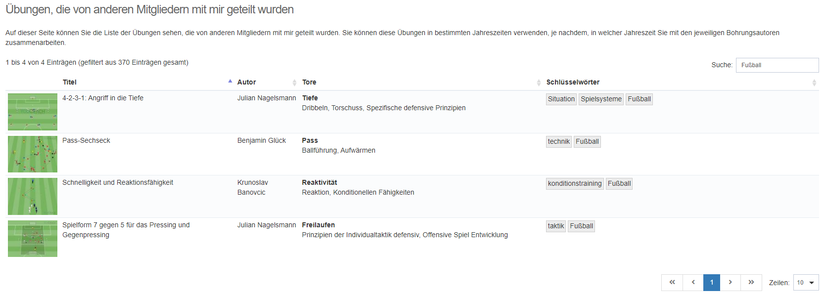 Alle Übungen, die von den einzelnen Mitarbeitern erstellt werden, können gemeinsam genutzt und für die Erstellung von Trainingseinheiten ausgewählt werden. Der Austausch von Ideen, insbesondere im Fußball, ist eine Quelle der Stimulation und des Wachstums für alle beteiligten Trainer. Vor allem auf der YouCoachApp: