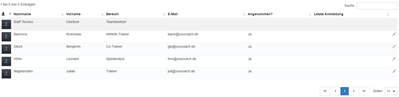 Indem Sie Ihre Mitarbeiter einladen, die YouCoachApp zu nutzen, um mit Ihnen zusammenzuarbeiten, können Sie die Hilfe erhalten, die Sie benötigen, um Schulungen und Übungen besser zu organisieren. Sie können Ihren Mitarbeitern je nach ihrer Rolle die Erlaubnis erteilen, bestimmte Aufgaben auszuführen. Um ein neues Personalmitglied einzuladen, loggen Sie sich in Ihr Team unter PERSONALMITGLIEDER im Seitenmenü ein, klicken Sie dann auf NEUES PERSONALMITGLIED EINLADEN, füllen Sie die erforderlichen Felder aus und wählen Sie die Funktionen aus, für die Sie eine Berechtigung erteilen möchten.