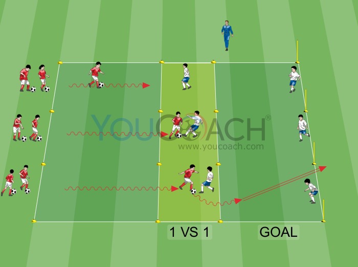 Exercício útil para melhorar o posicionamento correto, drible, desarme e remate |