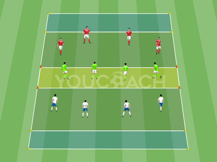 4 gegen 3: Ballbesitz mit Umschalten auf vier Zonen