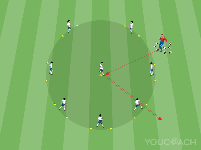 Freistoss Variante aus dem Zentrum: Abschluss von außen nach innen