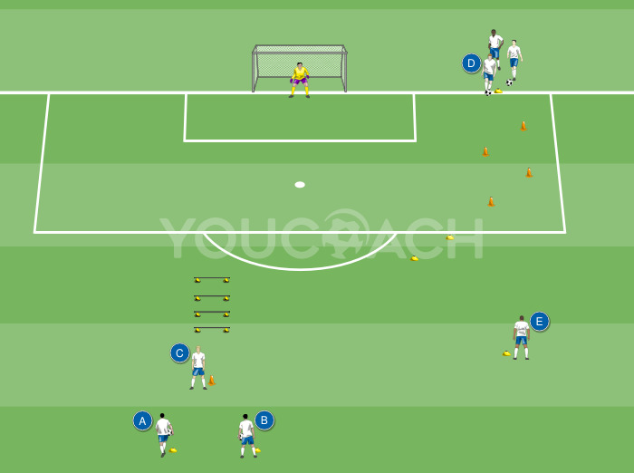 Koordinative Fähigkeiten - Koordinations-Parcours mit abschließendem präzisem Torschuss und 1 gegen 1 Situation -